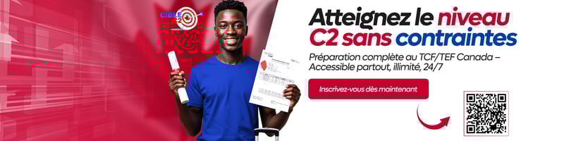 CIBLE C2 est une solution de préparation aux tests TEF Canada et TCF Canada. Grâce à des simulateurs d’épreuves, des sujets d’entraînement et des méthodes efficaces, vous pouvez vous préparer dans des conditions proches de l’examen. La plateforme couvre les 4 compétences : compréhension écrite, compréhension orale, expression écrite et expression orale. Préparez-vous à votre rythme et augmentez vos chances d’obtenir le score nécessaire pour votre projet Canada.